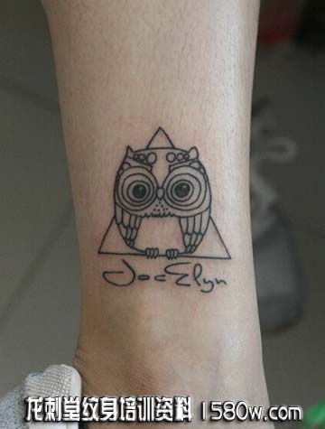 腿部超萌纹身猫头鹰纹身